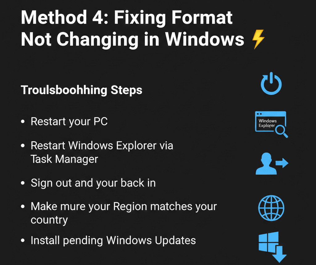 If the clock doesn’t update after changing the format, try these fixes: