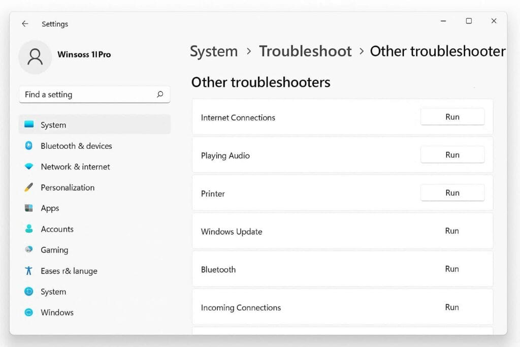 3. Run the available troubleshooters.
