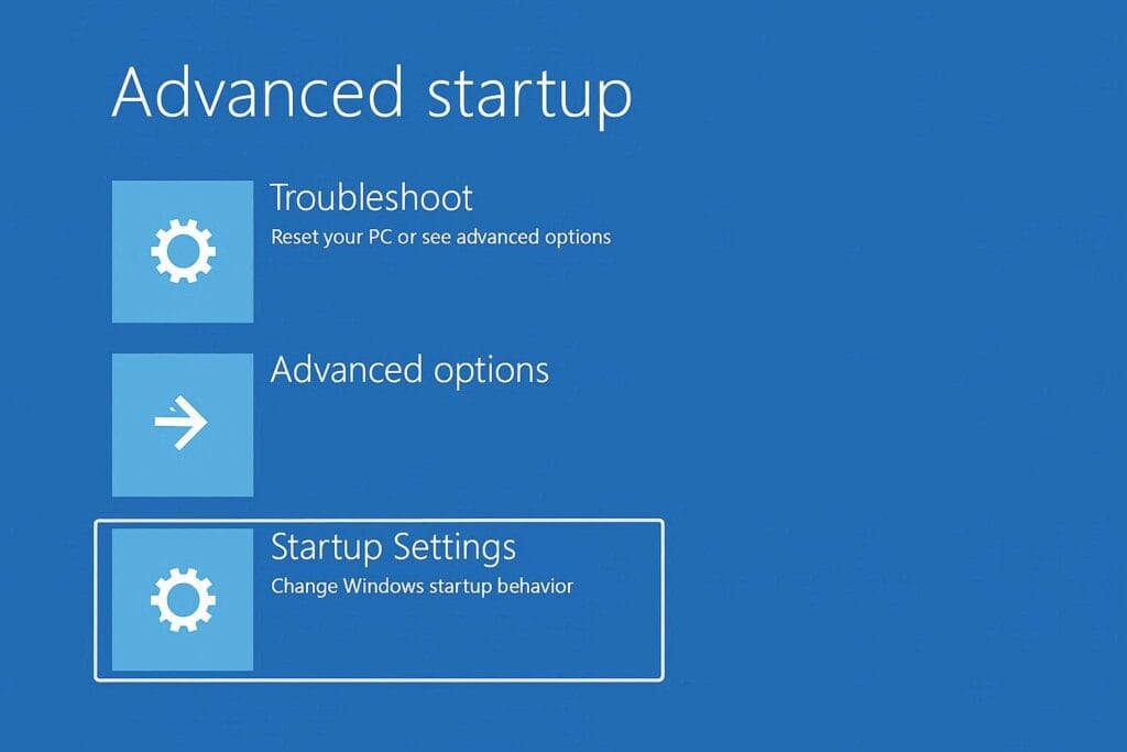 3. Choose Troubleshoot → Advanced Options → Startup Settings.