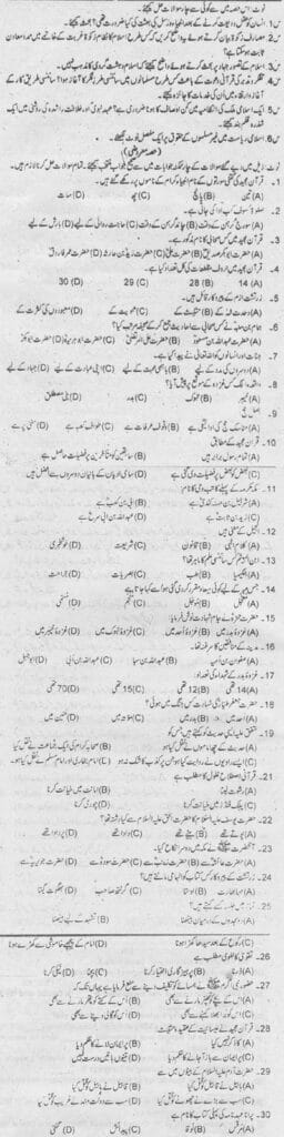 Islamic Studies Past Papers (PPSC, PMS, FPSC)