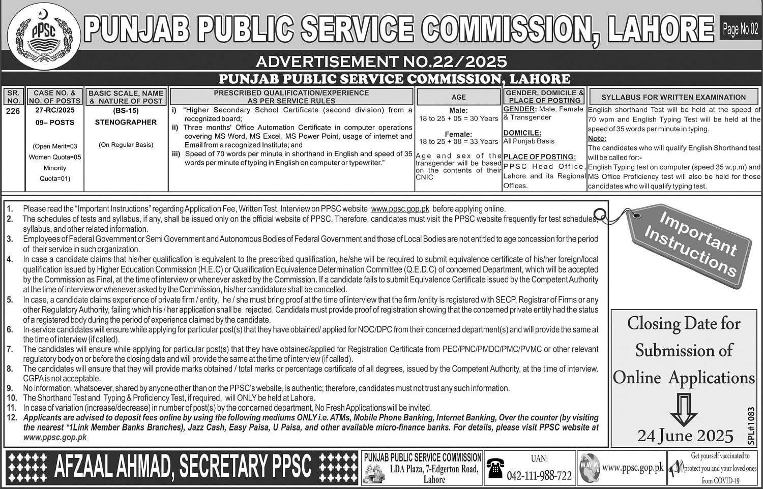 Punjab Public Service Commission (PPSC) is inviting applications for multiple management and specialized roles as per the job advertisement published in the daily Dunya Newspaper on 06 June 2025, for vacancies located in Egerton Road, Lahore, Punjab.