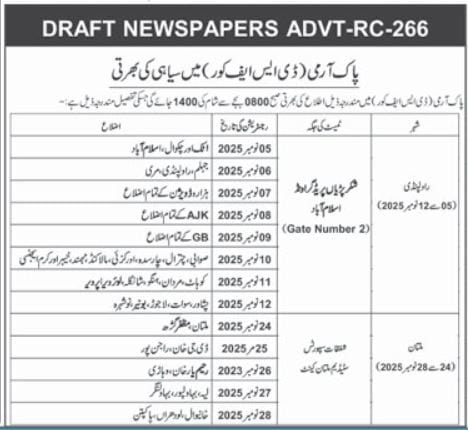 Vacant posts including Sepoy are announced in Pakistan Army Islamabad, Islamabad and Multan, Pakistan as per 8 November 2025 advertisement in daily Ausaf Newspaper. Candidates with Matric educational background will be preferred.