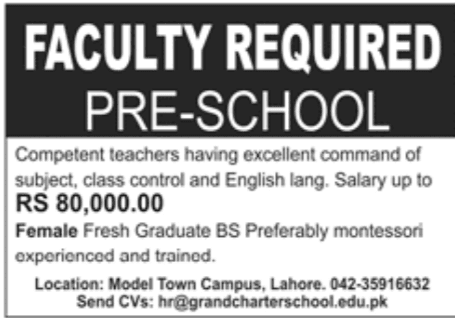 New Private Jobs in Lahore and all over Pakistan Private Jobs in Grand Charter School have been announced in different newspapers and as per ad closing date around 08 September, 2025. So apply before the closing date and also read carefully details of job online in the advertisement where complete procedure of application is available.